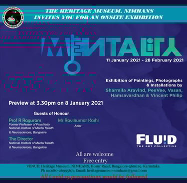 The art show Mentality was showcased at Heritage Museum Nimhans, from Jan 8th to March 8th, 2021.