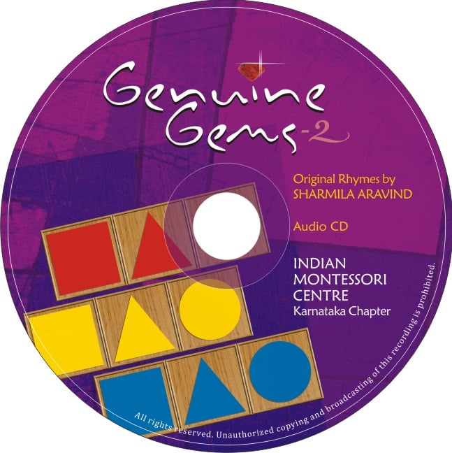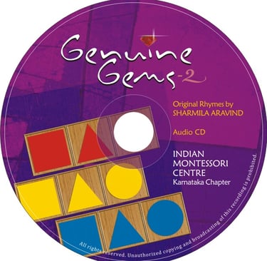 The Indian Montessori Centre Produced two volumes of Children's Rhymes, Genuine Gems, Volume 1 & 2, where Sharmila Aravind has written the rhymes in three languages and also lent her voice. The uniqueness of the rhymes is the content itself which has been well researched and written to cater to children.