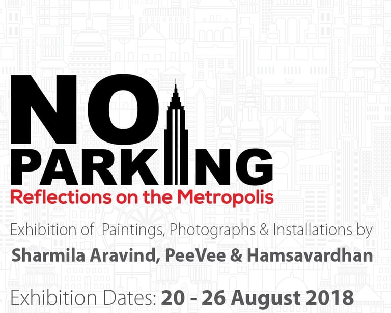 NO PARKING is an artistic interpretation of what The City encompasses in its myriad hues, smells and sights, urban chaos, congestion, struggle for space, losses and gains, development, under construction mode and all such elements which constitute the city. An exploratory experiment through the mediums of paintings, photography and installations.